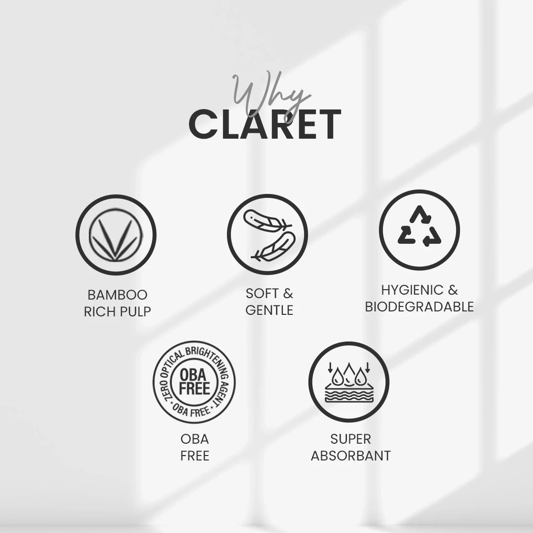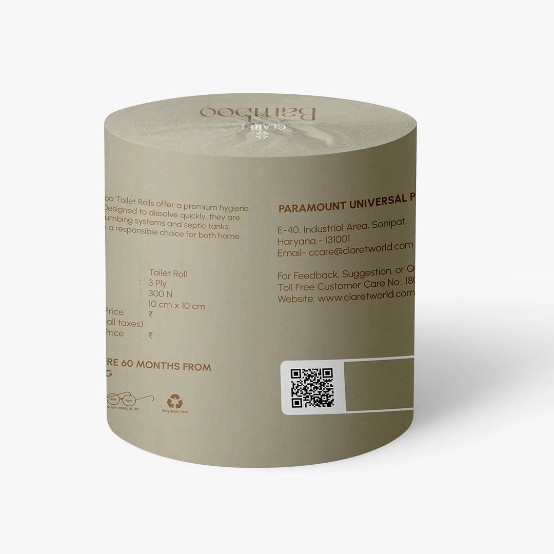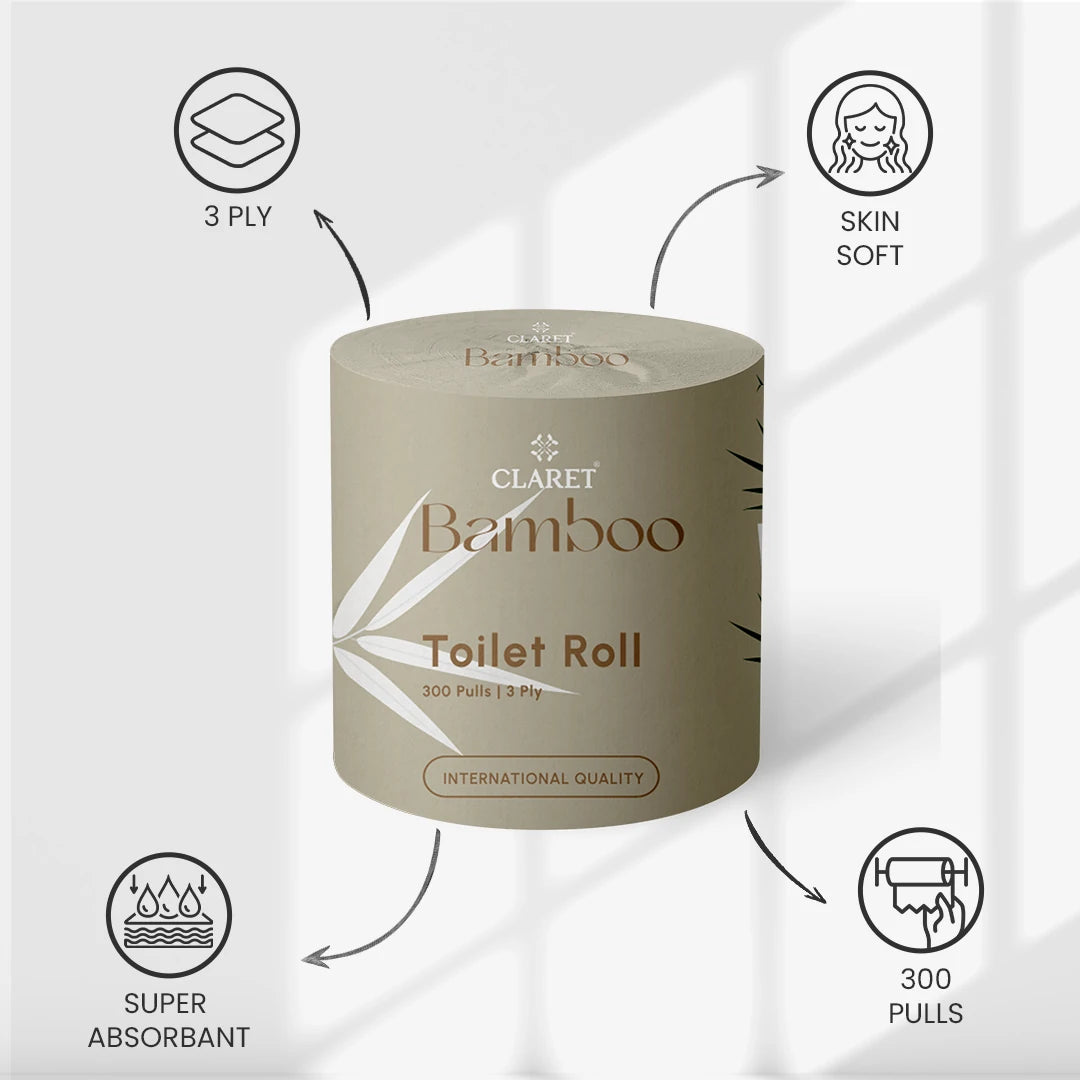 Claret Bamboo Toilet Roll delivers 300 sheets of plush 3-ply tissue made from pure bamboo pulp. With its soft texture, natural color, and eco-safe design, it's perfect for modern bathrooms that want both luxury and sustainability. Ideal for personal use, guest bathrooms, or minimal-waste living.
