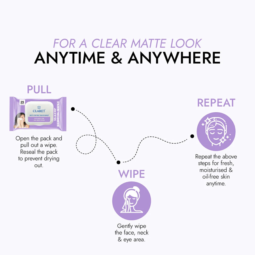 Claret Gentle Makeup Removal Wet Wipes are specially formulated to give your skin a soft, refreshing cleanse while effectively lifting away even the most stubborn makeup. Infused with gentle ingredients, these wipes are alcohol-free, paraben-free, and pH balanced, ensuring a soothing experience for all skin types, including sensitive skin.