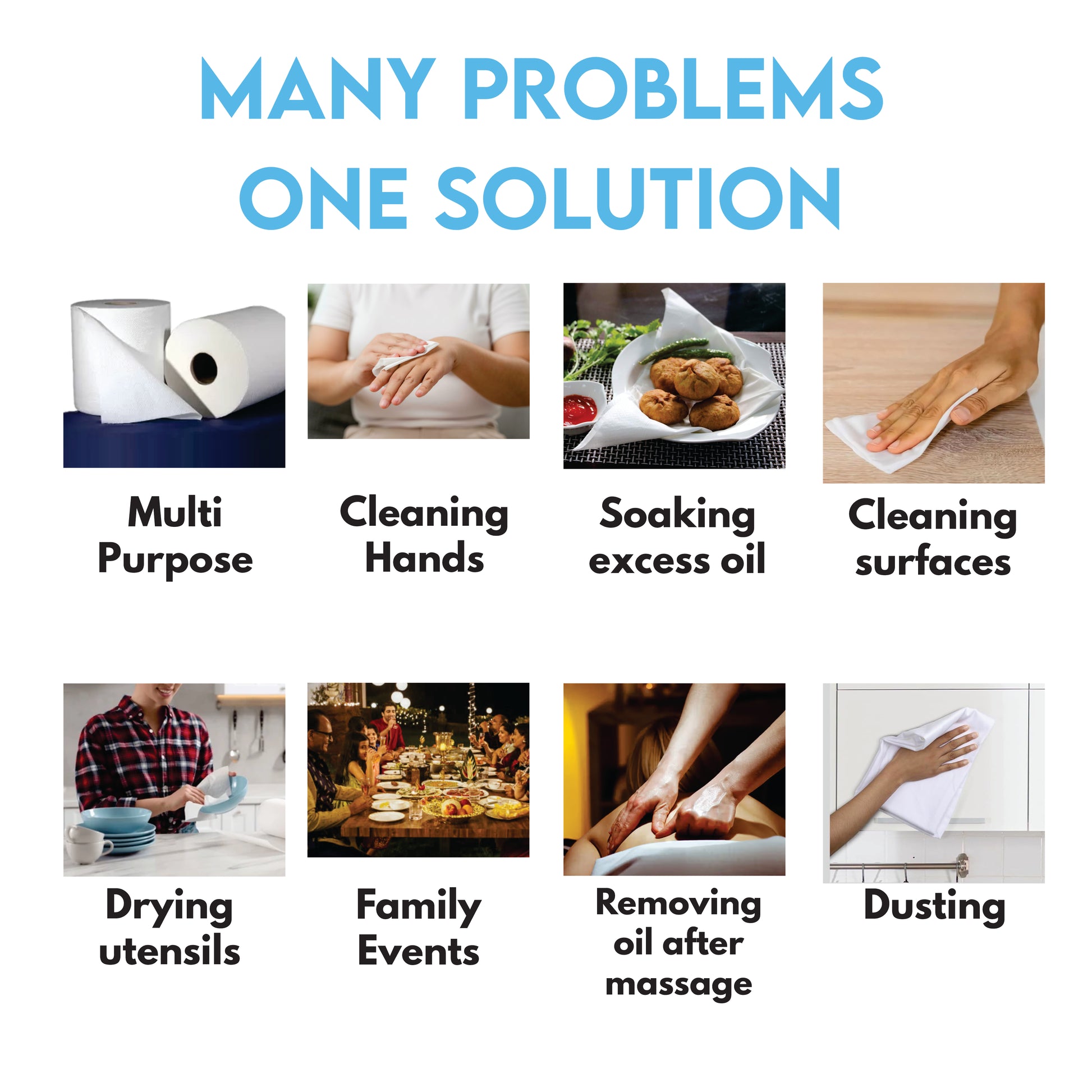 Claret Kitchen Towel 2 in 1 Combo is a set of two ultra-absorbent, 2-ply paper towel rolls. Each roll contains 60 strong and hygienic sheets made from virgin pulp. Designed for home and professional kitchens, they're ideal for wiping, drying, cleaning, and absorbing oil or moisture. Perfect balance of strength and softness.