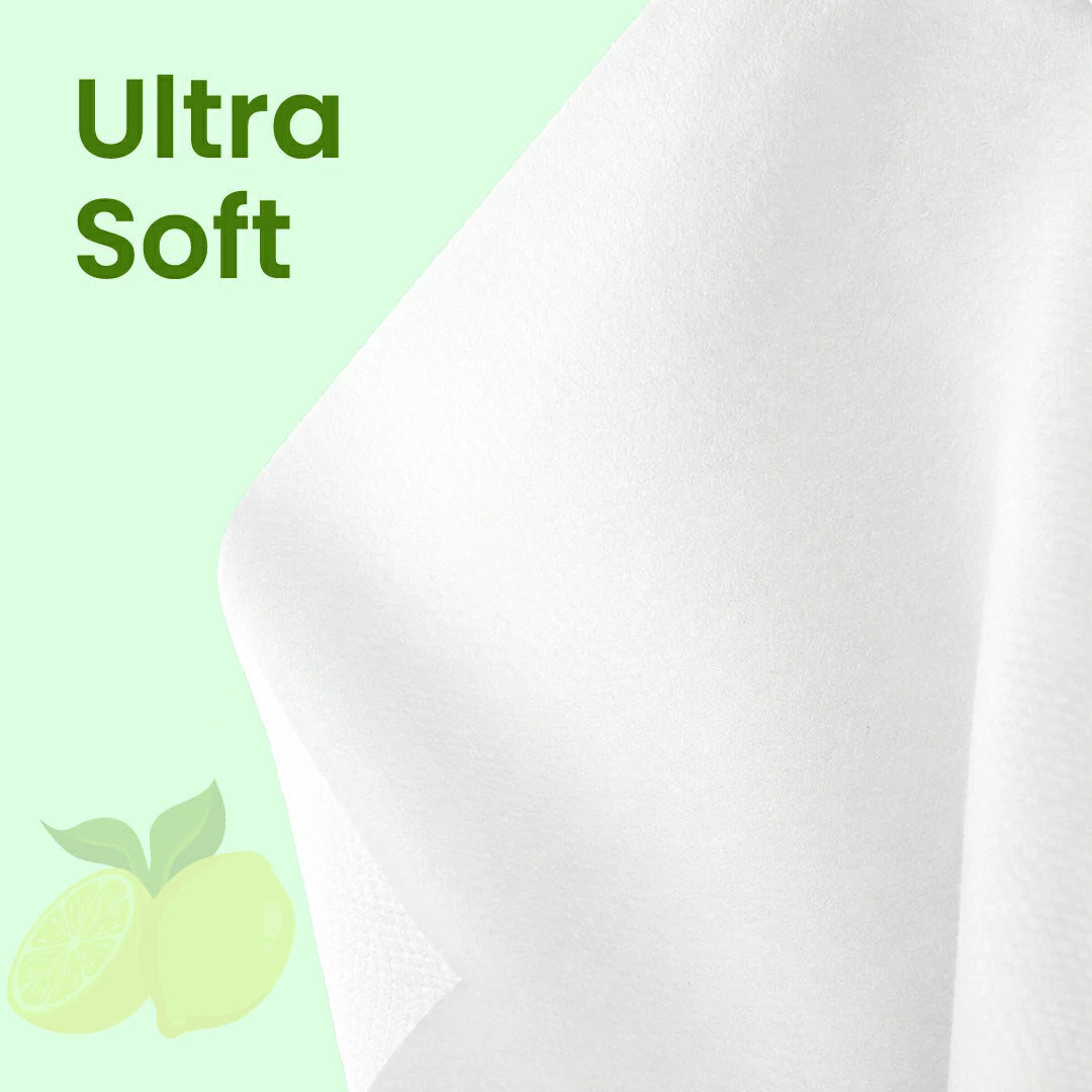 Claret Refreshing Wet Wipes with Natural Lemon Extract are designed to cleanse and energize your skin wherever life takes you. Each wipe is enriched with lemon essence and ultra-purified water, delivering a burst of cool, zesty freshness. Crafted with skin-safe, biodegradable viscose and free from alcohol or harsh chemicals, these wipes are the perfect way to feel clean, fresh and rejuvenated - anytime, anywhere.